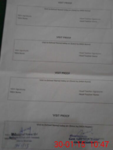 | Attendance Register | Head Teacher | MEA with School | Visit Proof |