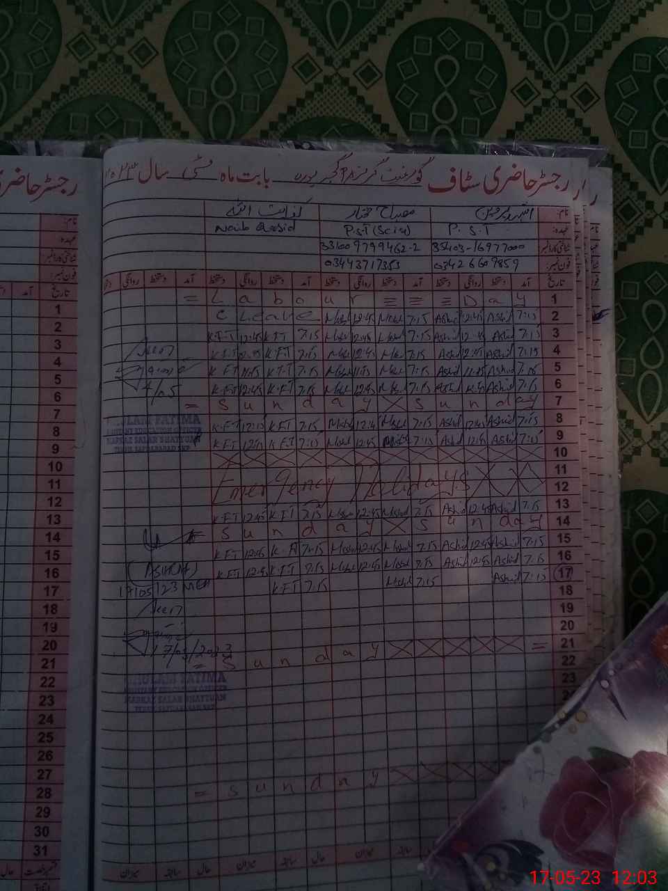 | CNIC | Full Name | Designation | R/C | Absence During Last Calender Month |