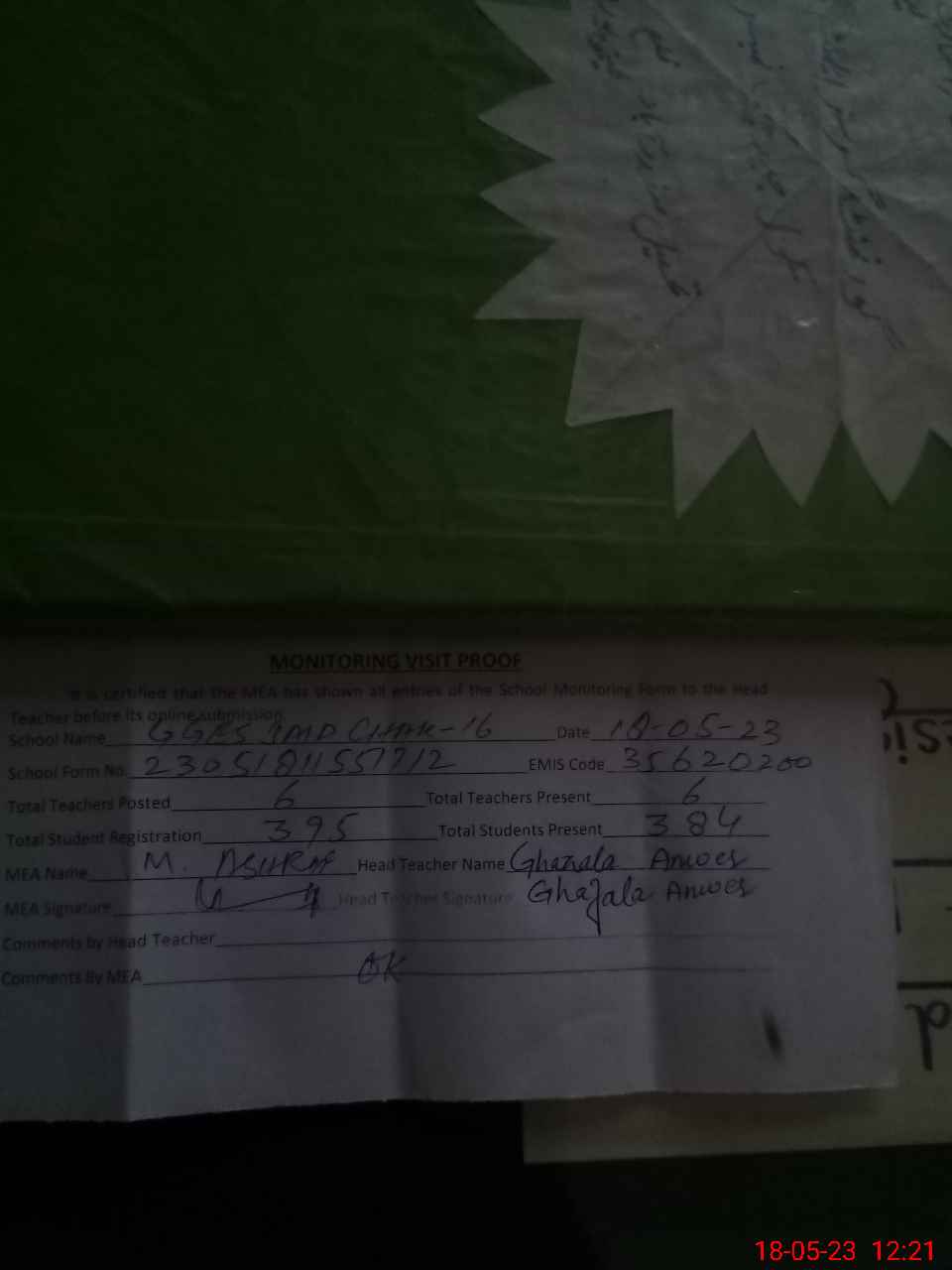 | EMIS Code: 35620200 | Name of School: GGES JAID CHAK NO. 16 | |||