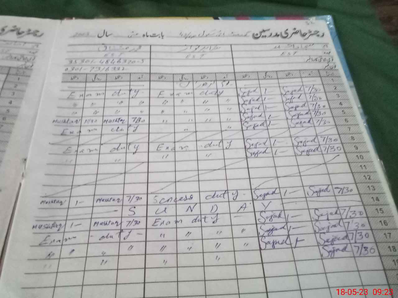 | 35**** | Ha**** Mu**** Sh**** Na**** | EST | Regular | 0 | 0 | 0 | 0 | 0 | 0 | 0 | 0 | 0 | Exam Duty |