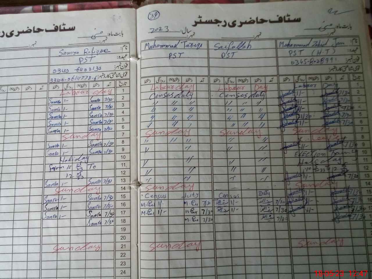 | Name: Mo**** Za**** Designation: (School Headmaster's/Headmistress's) PST Phone/Cell Number: 03**** |
