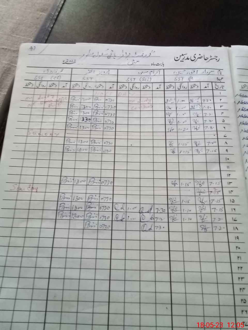 | CNIC | Full Name | Designation | R/C | Absence During Last Calender Month |