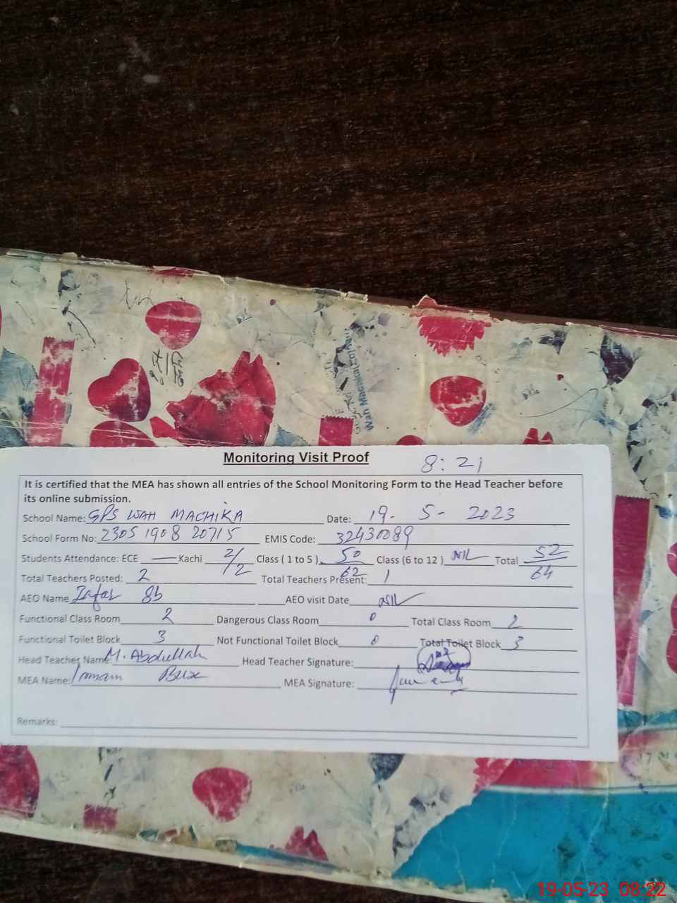 | EMIS Code: 32430089 | Name of School: GPS WAH MACHIKA | |||