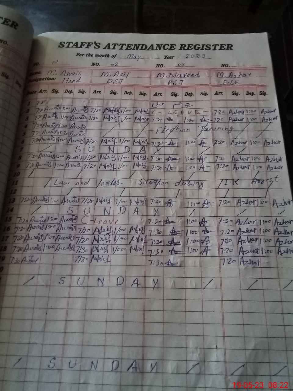 | CNIC | Full Name | Designation | R/C | Absence During Last Calender Month |