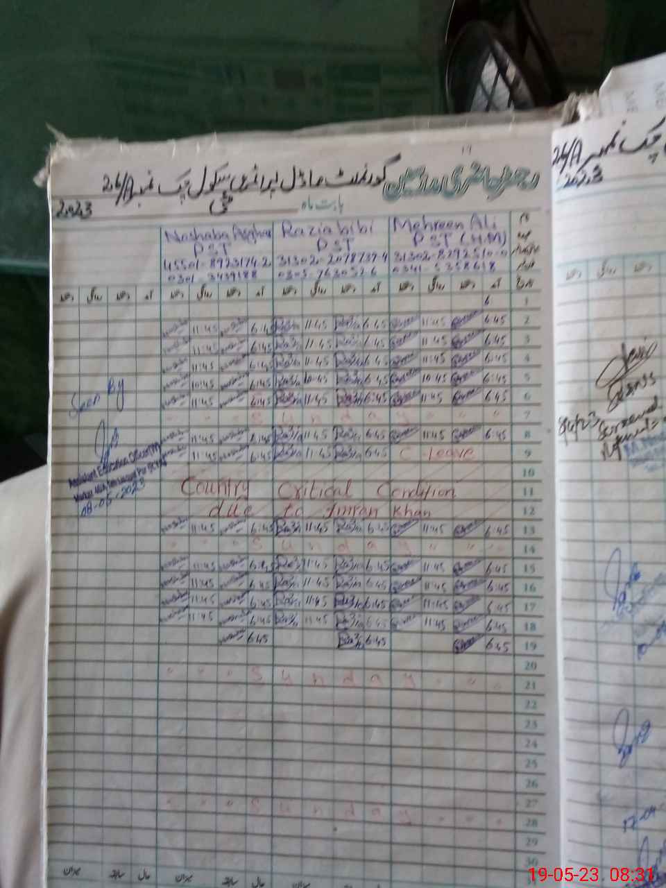 | Monitoring Date: 19-05-2023 | Start Time: 19-05-2023 08:03 AM | End Time: 19-05-2023 08:37 AM | Name of MEA: Mu**** Sa**** Ul**** Sa**** | |
