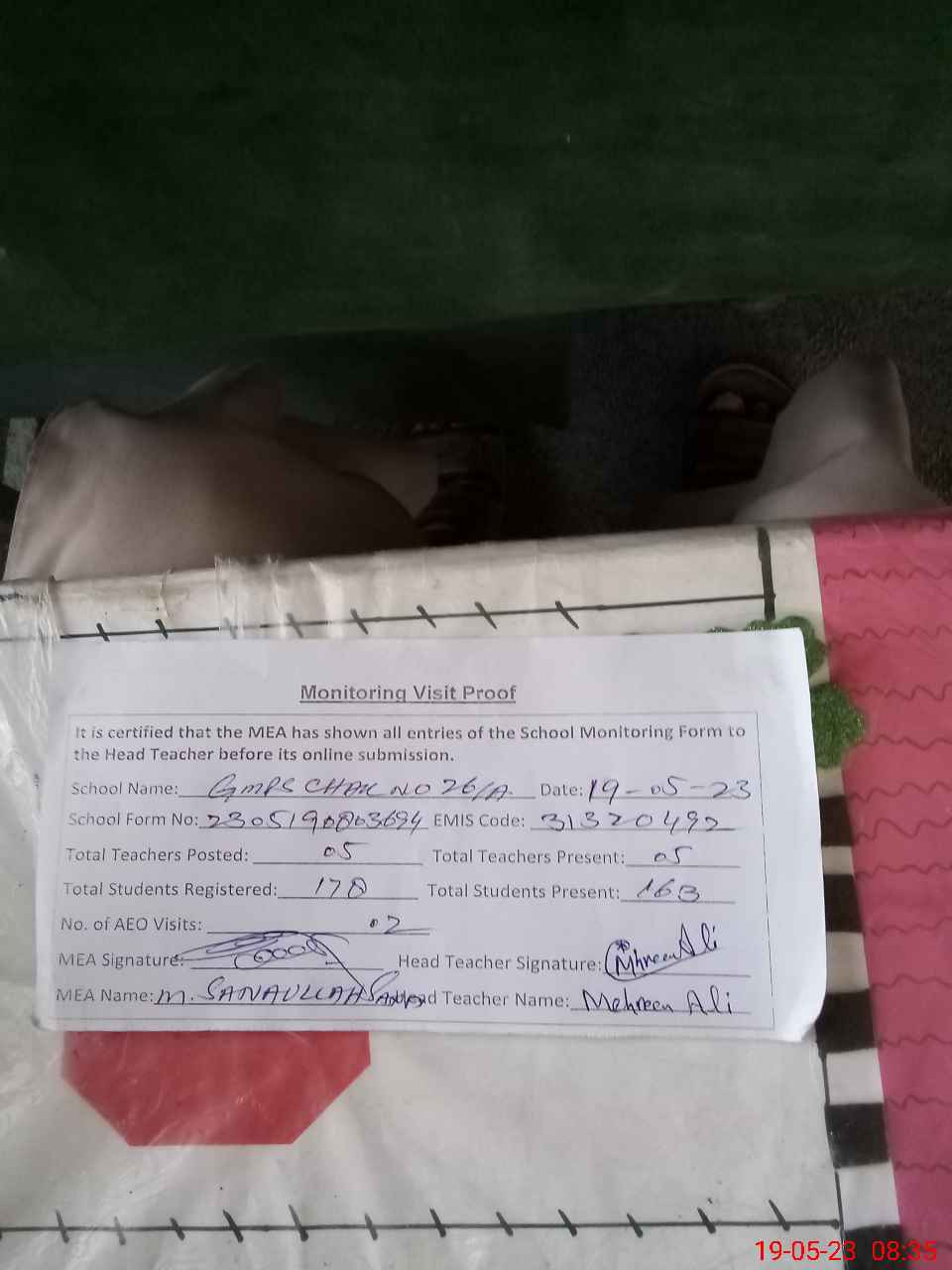 | Attendance Register | Head Teacher | MEA with School | Visit Proof |
