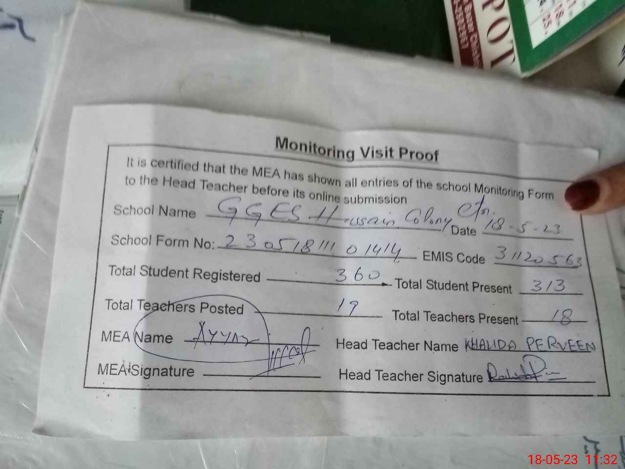 | EMIS Code: 31120563 | Name of School: GGES HUSSAIN COLONY | |||