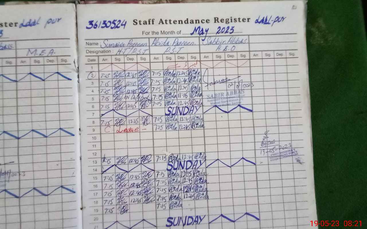 | CNIC | Full Name | Designation | R/C | Absence During Last Calender Month |