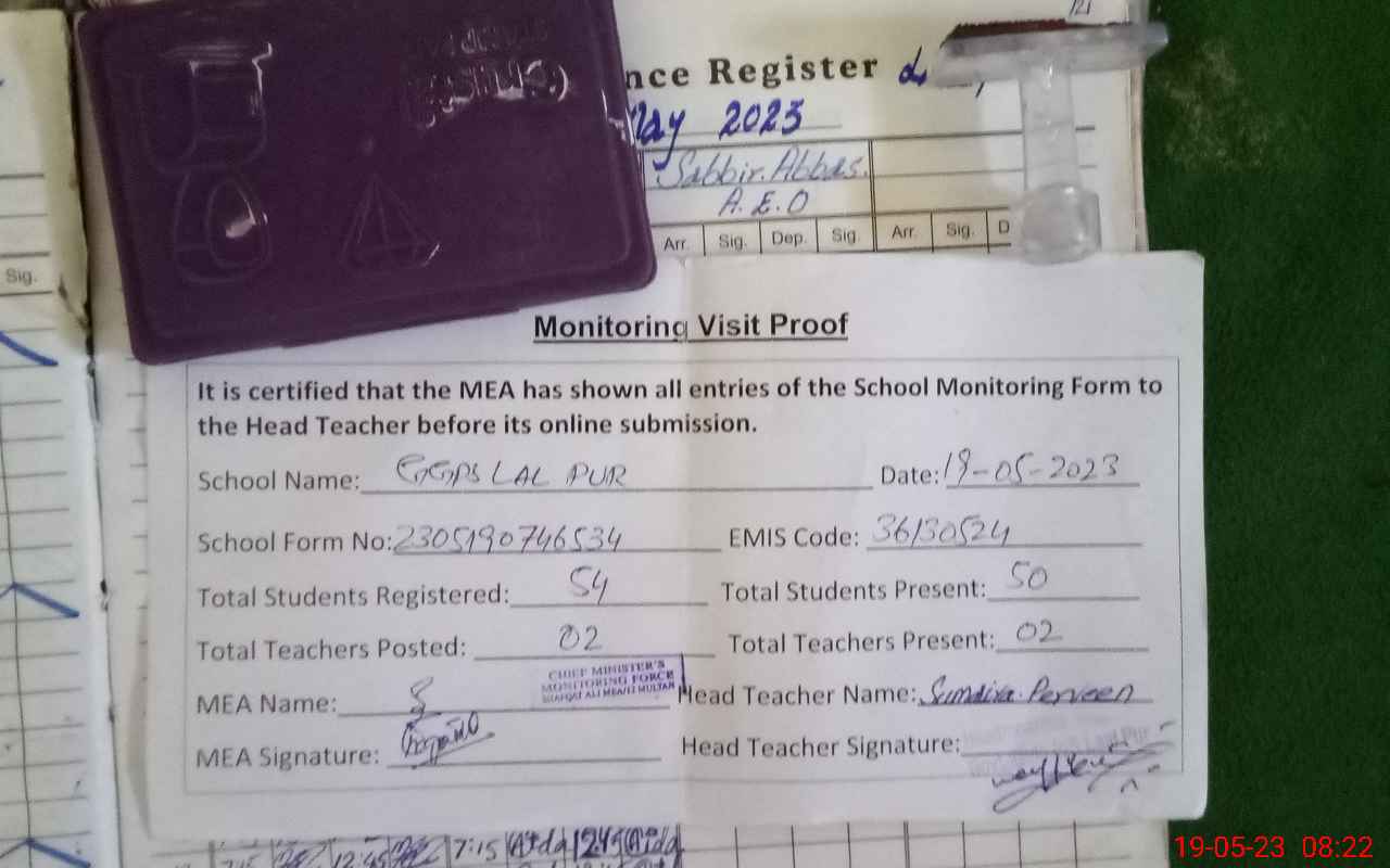 | Attendance Register | Head Teacher | MEA with School | Visit Proof |