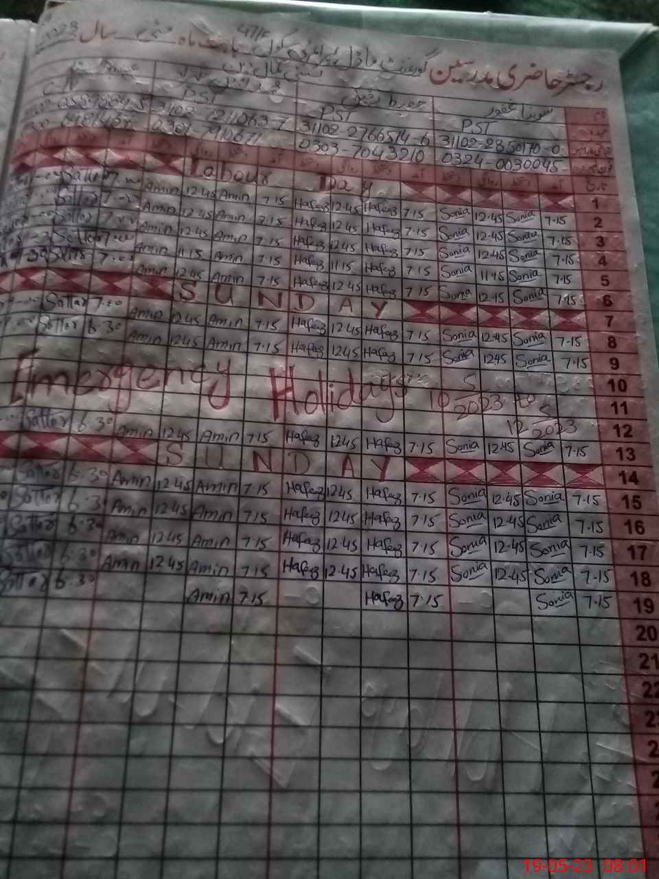| CNIC | Full Name | Designation | R/C | Absence During Last Calender Month |