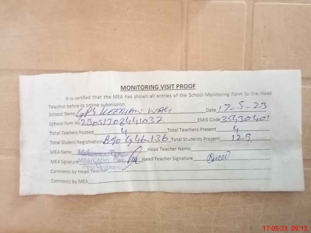 | EMIS Code: 35430401 | Name of School: GPS KEERIAN WALI | |||