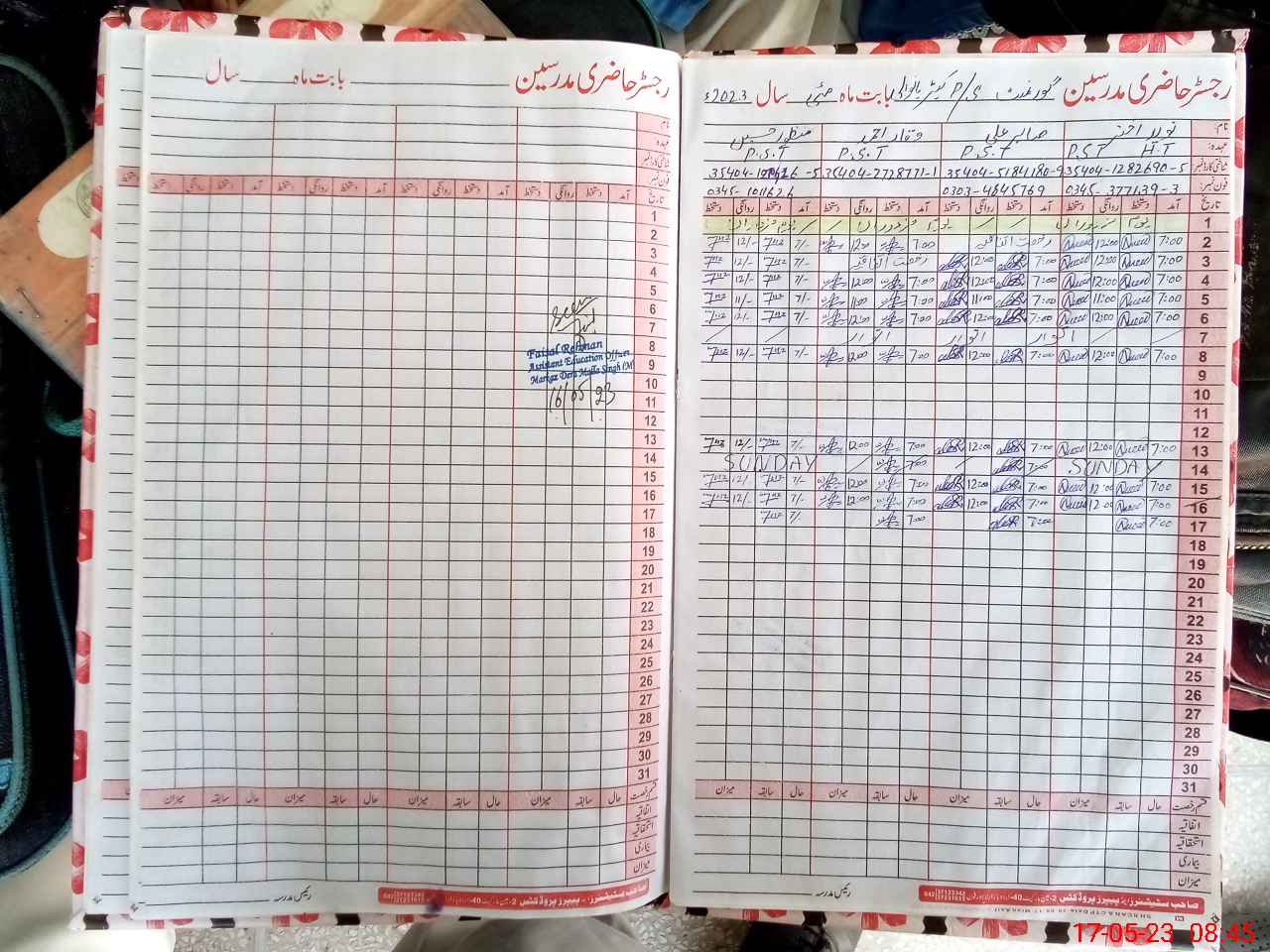 | Name: NA**** AK**** Designation: (School Headmaster's/Headmistress's) PST Phone/Cell Number: 03**** |