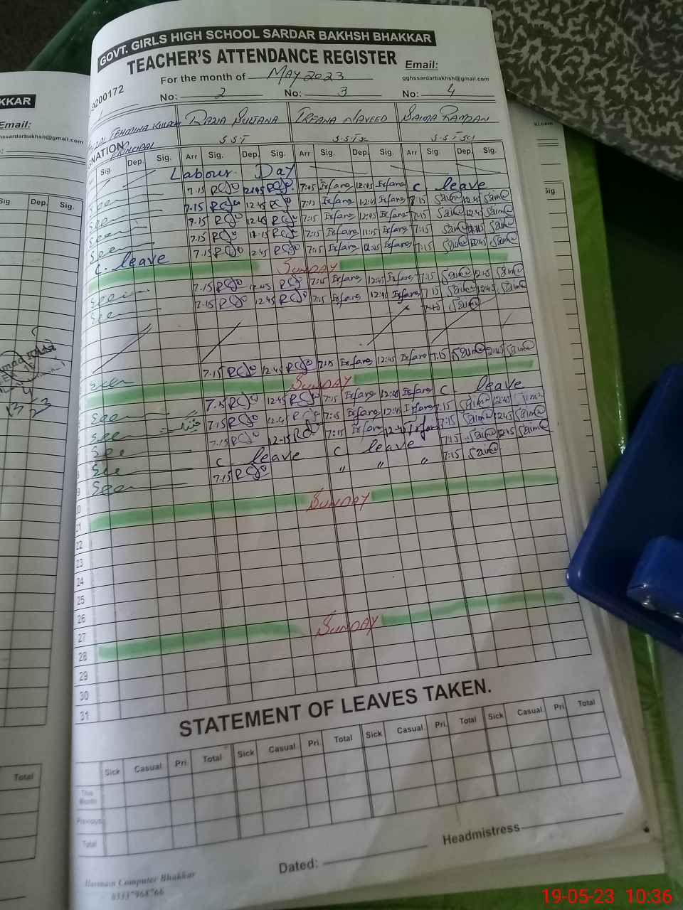| Leave | Duty | Absent | Maternity | Medical | Ex- Pak |