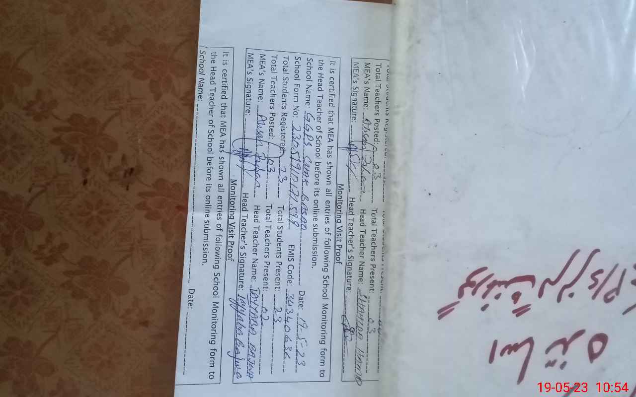 | Certified that this School was Inspected by the Undersigned MEA/DMO Today and the Information Stated Above is as Per Record. | |||||
