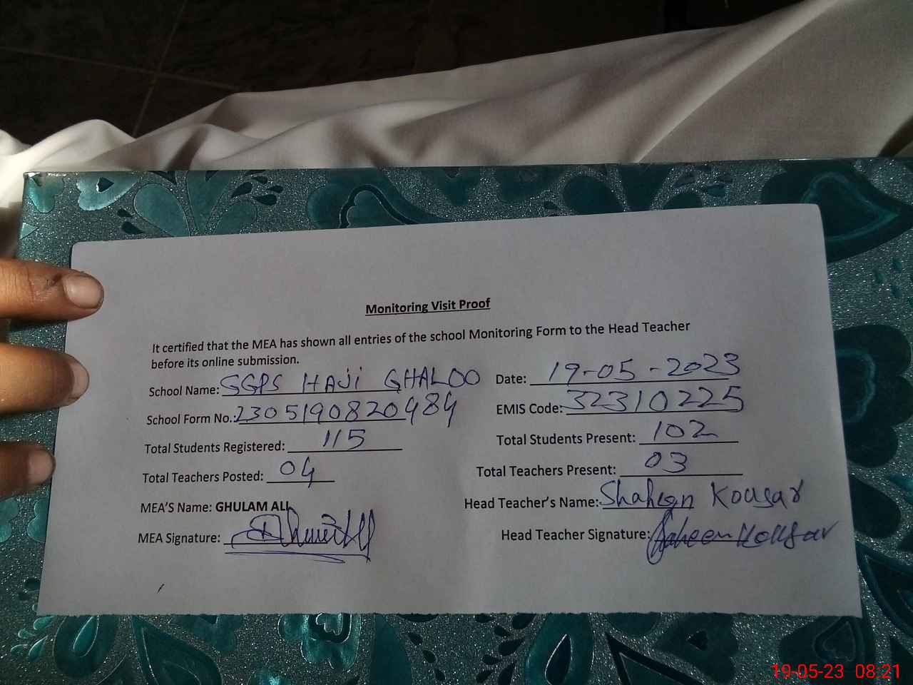 | EMIS Code: 32310225 | Name of School: GGPS HAJI GHALOO | |||