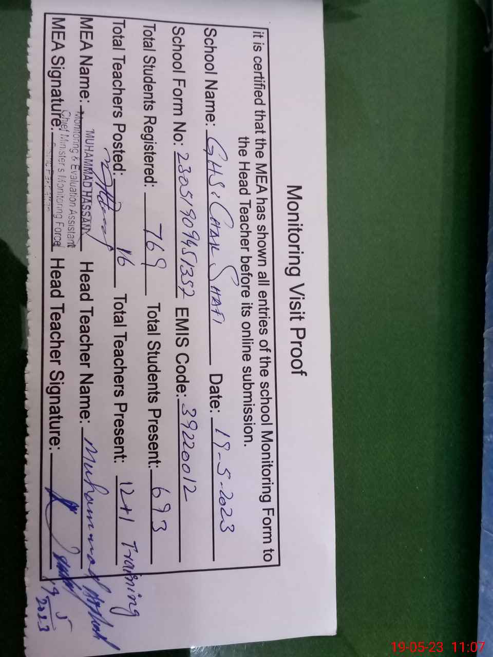 | EMIS Code: 39220012 | Name of School: GHS CHAK SHAFI | |||