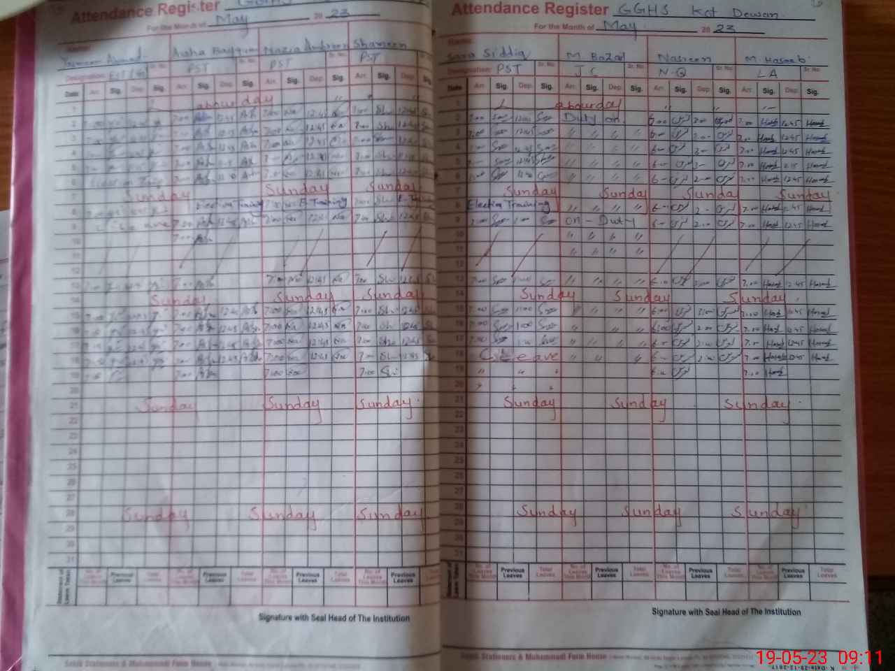 | CNIC | Full Name | Designation | R/C | Absence During Last Calender Month |