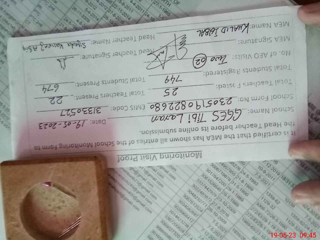 | Certified that this School was Inspected by the Undersigned MEA/DMO Today and the Information Stated Above is as Per Record. | |||||