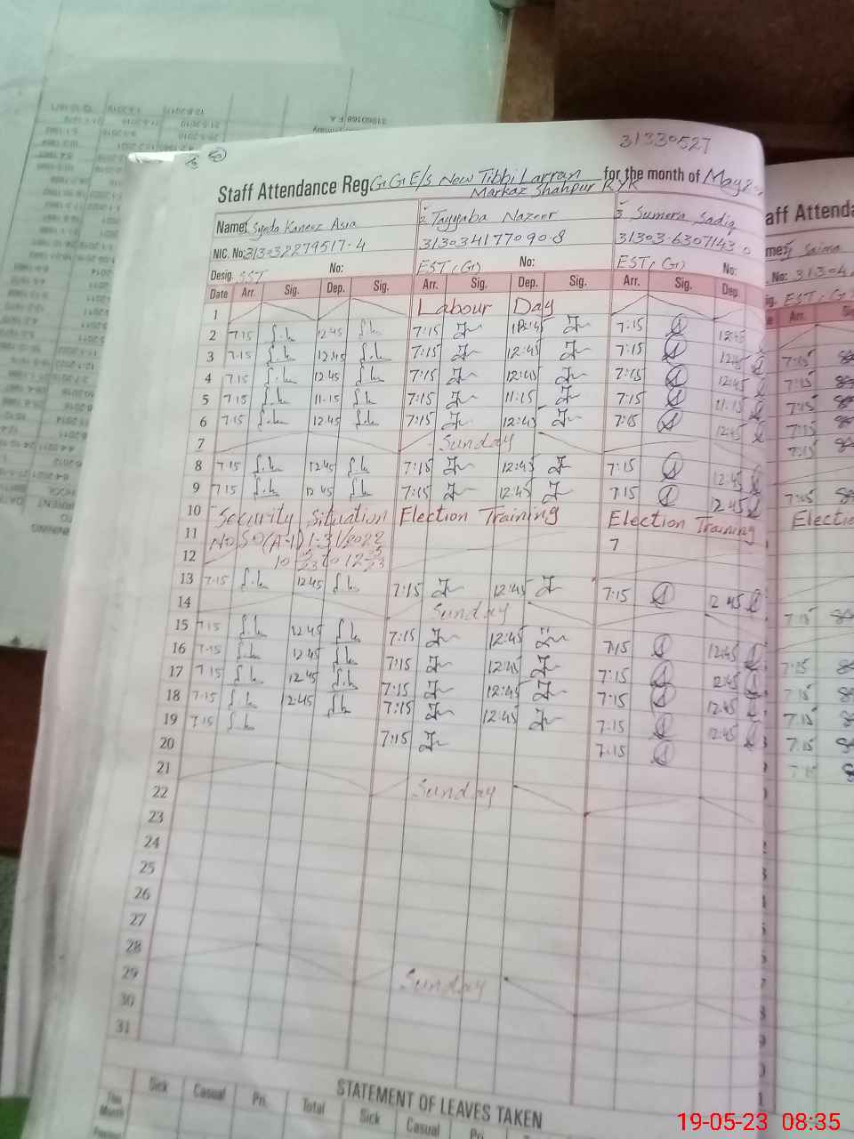| 31**** | Uz**** Ma**** | PST | Regular | 22 | 0 | 0 | 22 | 0 | 0 | 0 | 0 | 0 | Maternity |