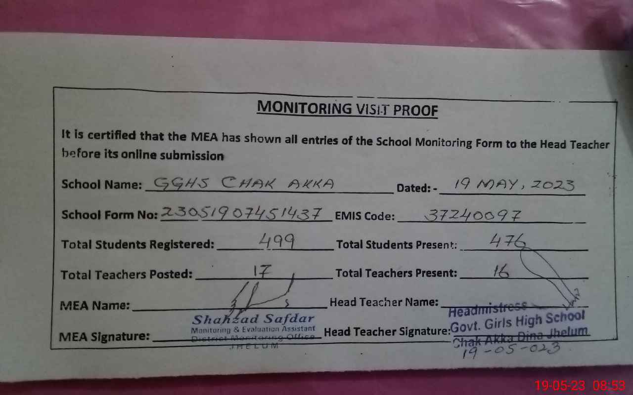 | EMIS Code: 37240097 | Name of School: GGHS CHAK AKKA | |||