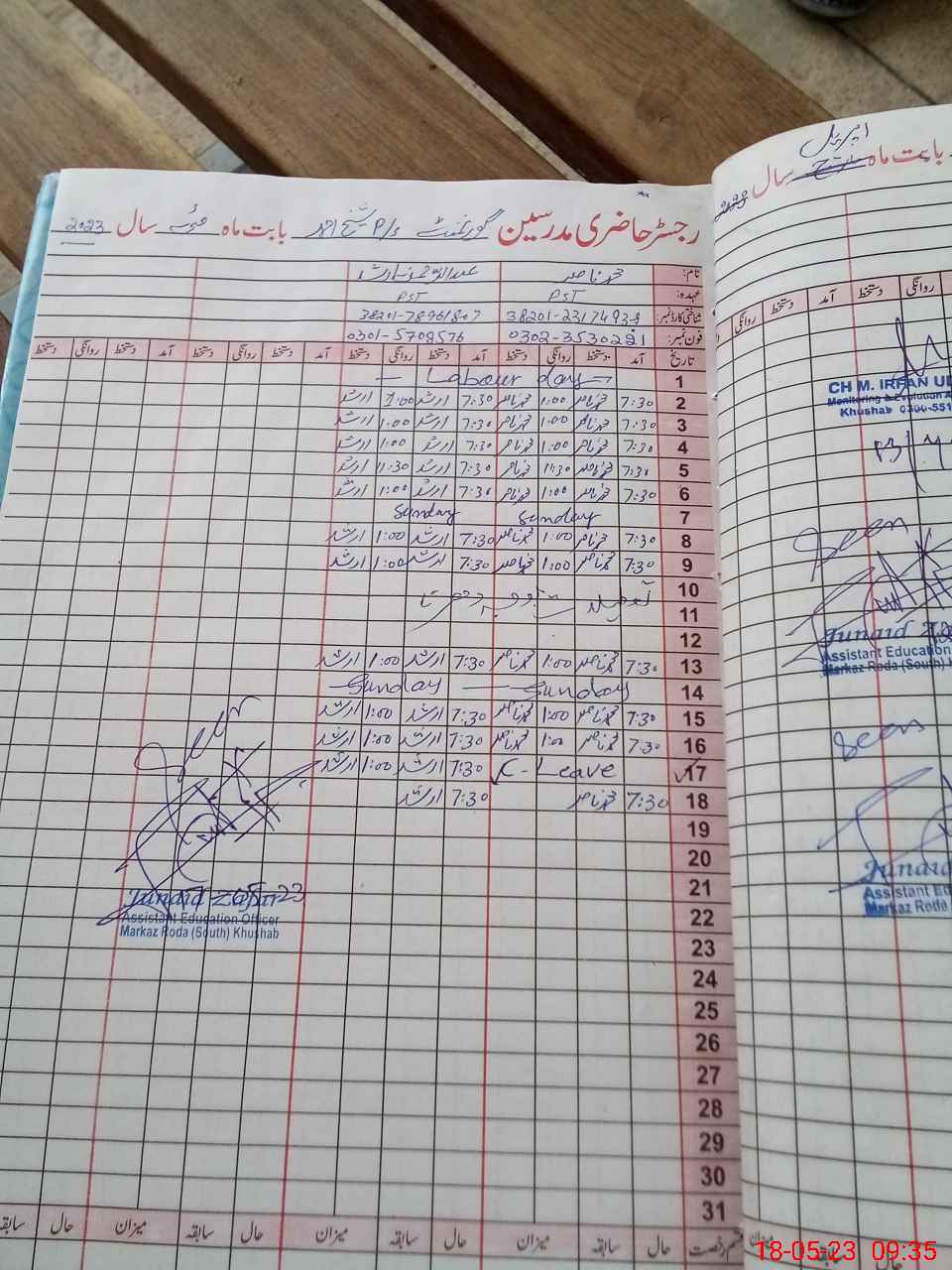 | Name: Mu**** Na**** Designation: (School Headmaster's/Headmistress's) PST Phone/Cell Number: 03**** |