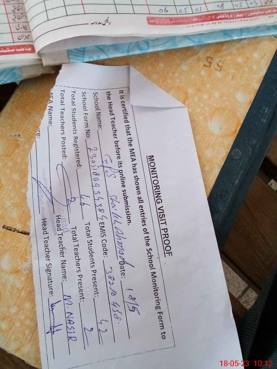 | EMIS Code: 38210458 | Name of School: GPS SHEIKH AHMAD | |||