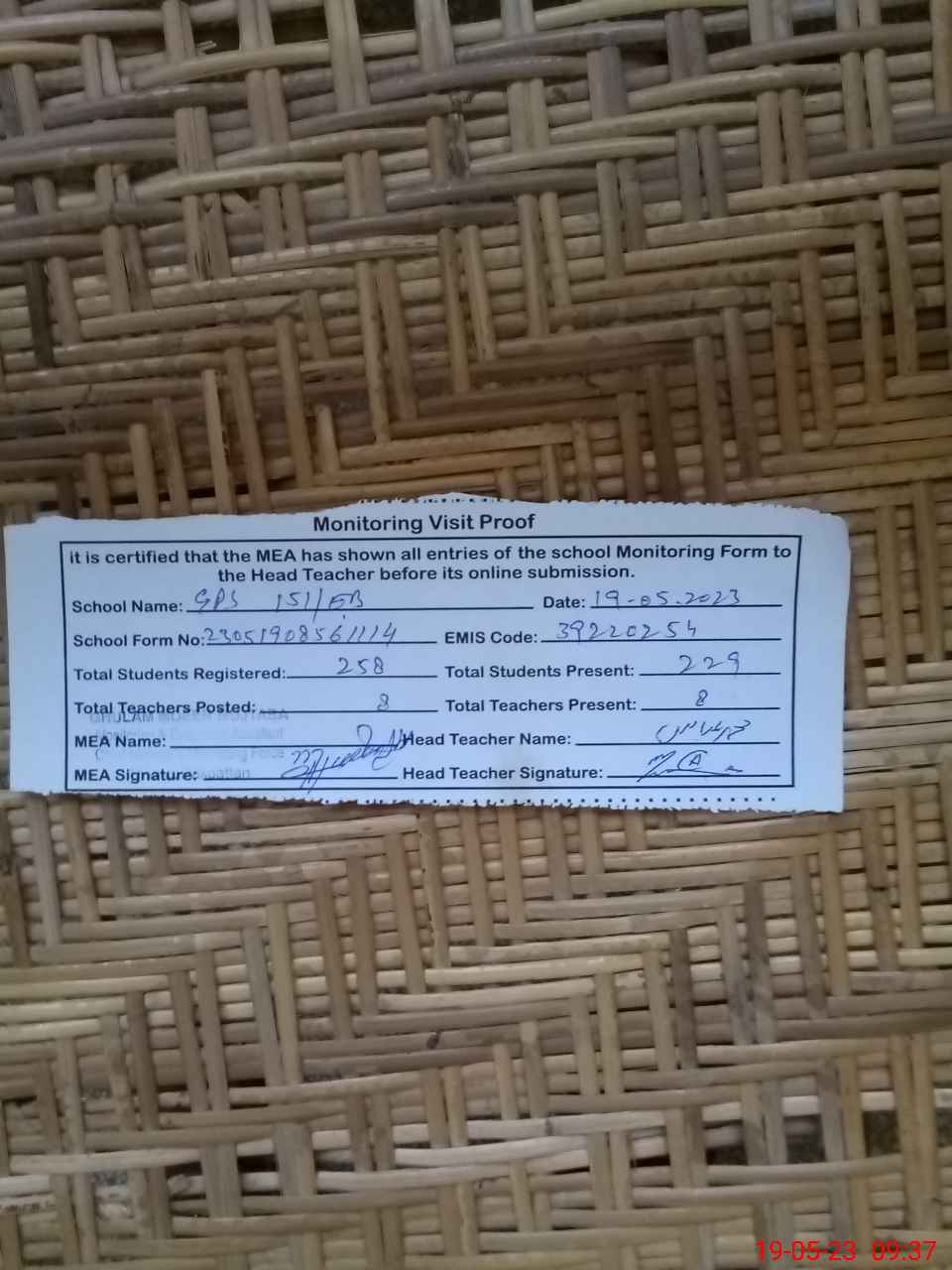 | Certified that this School was Inspected by the Undersigned MEA/DMO Today and the Information Stated Above is as Per Record. | |||||