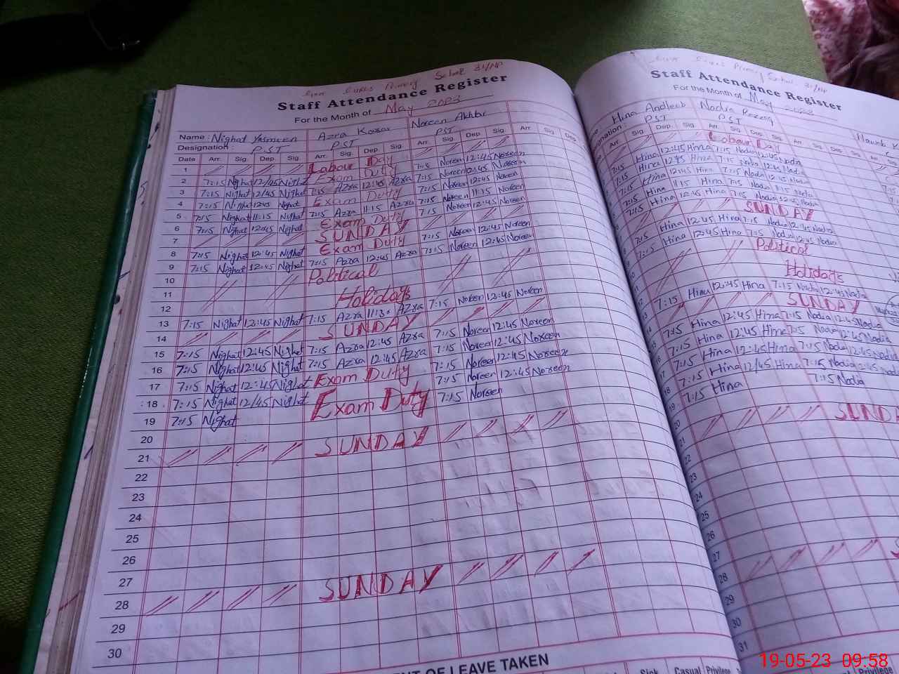 | 31**** | Az**** Ko**** | PST | Regular | 0 | 7 | 0 | 0 | 0 | 0 | 0 | 0 | 0 | Exam Duty |