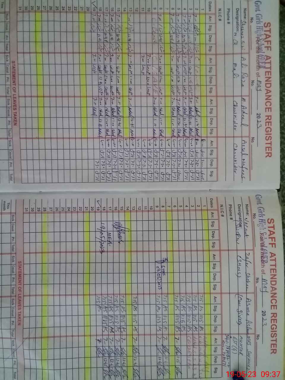 | CNIC | Full Name | Designation | R/C | Absence During Last Calender Month |