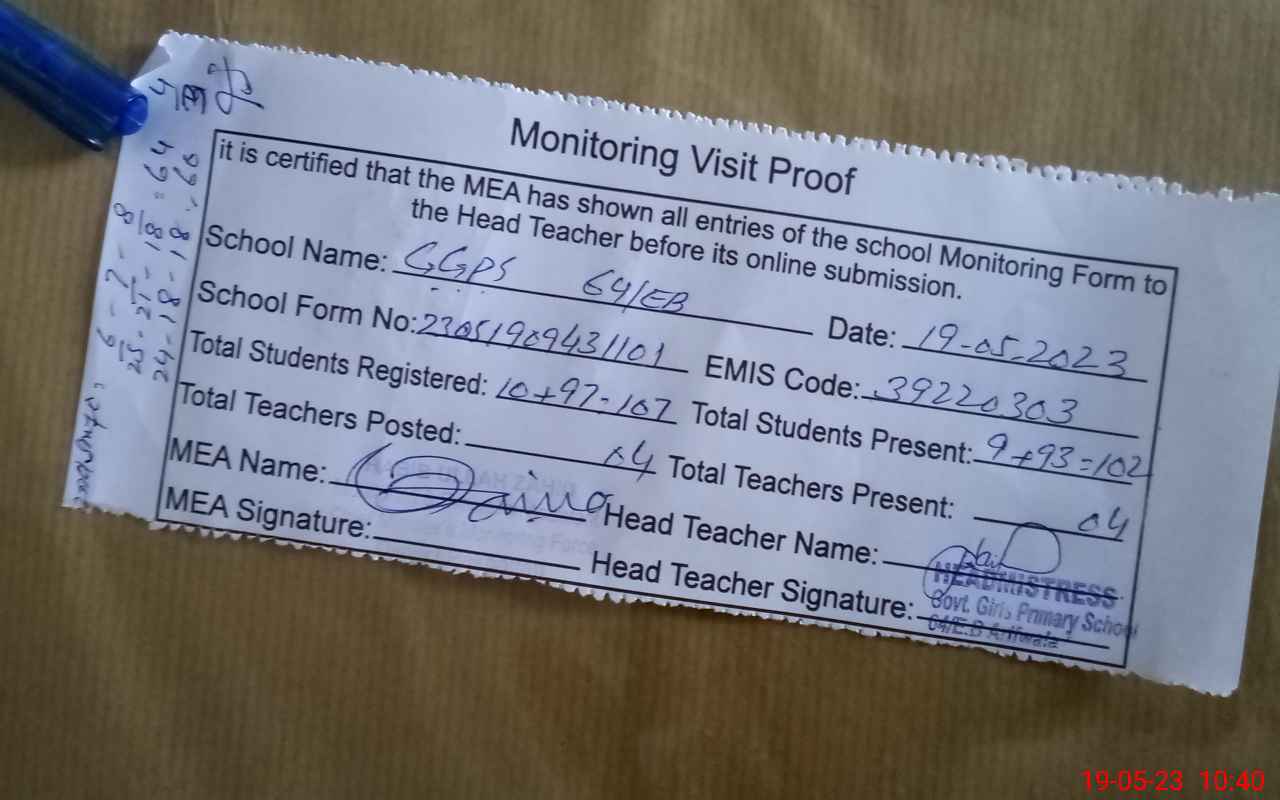 | Attendance Register | Head Teacher | MEA with School | Visit Proof |