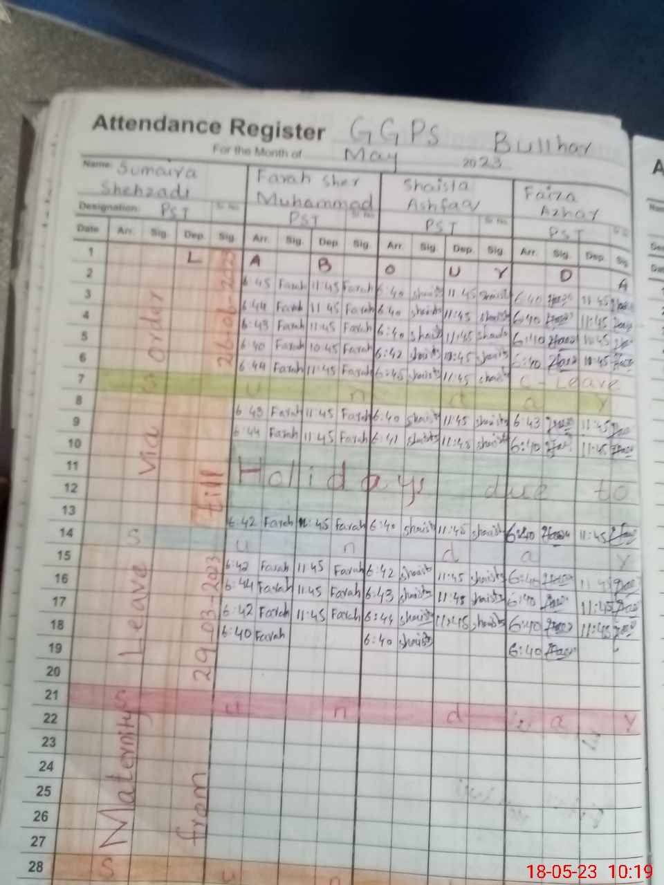 | Leave | Duty | Absent | Maternity | Medical | Ex- Pak |