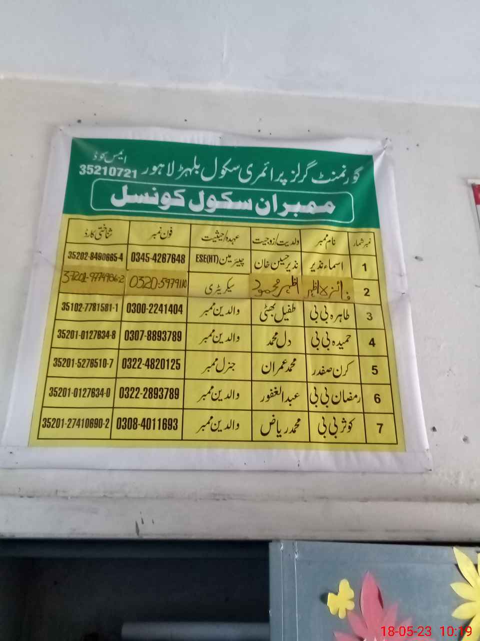 | Name: Fa**** Sh**** Mu**** Designation: (School Headmaster's/Headmistress's) PST Phone/Cell Number: 03**** |