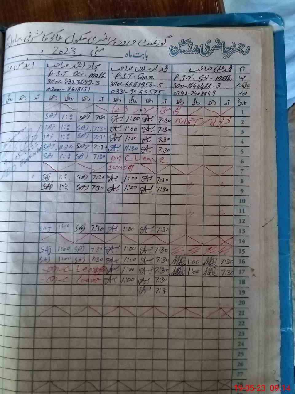 | Name: Mu**** Ar**** Designation: (School Headmaster's/Headmistress's) PST Phone/Cell Number: 03**** |