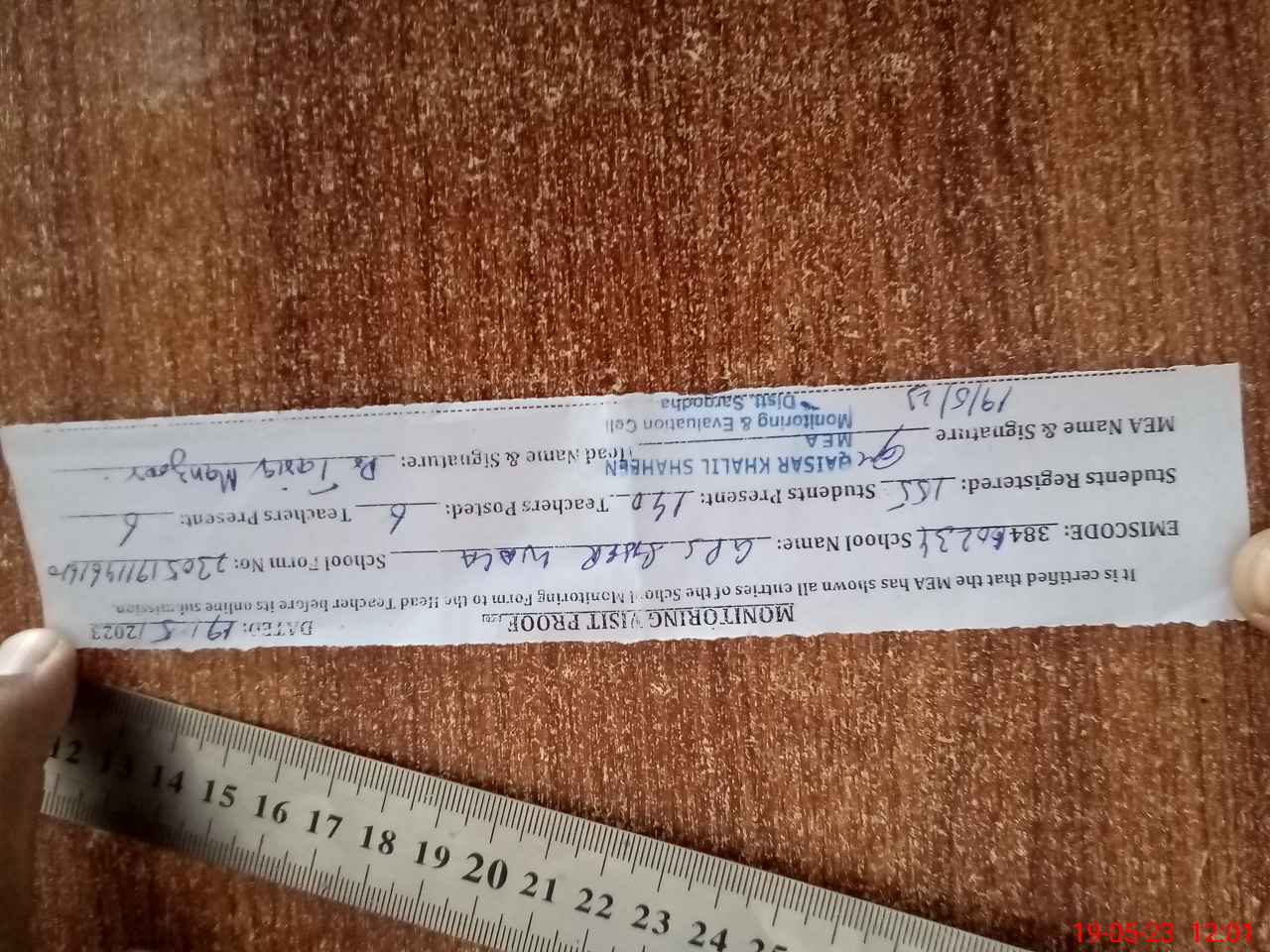 | Certified that this School was Inspected by the Undersigned MEA/DMO Today and the Information Stated Above is as Per Record. | |||||