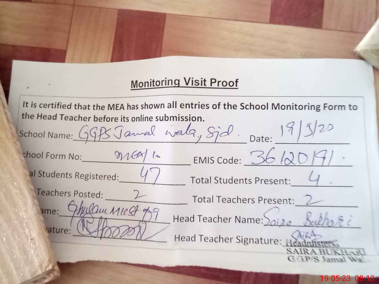 | EMIS Code: 36120191 | Name of School: GGPS JAMAL WALA SHUJABAD | |||