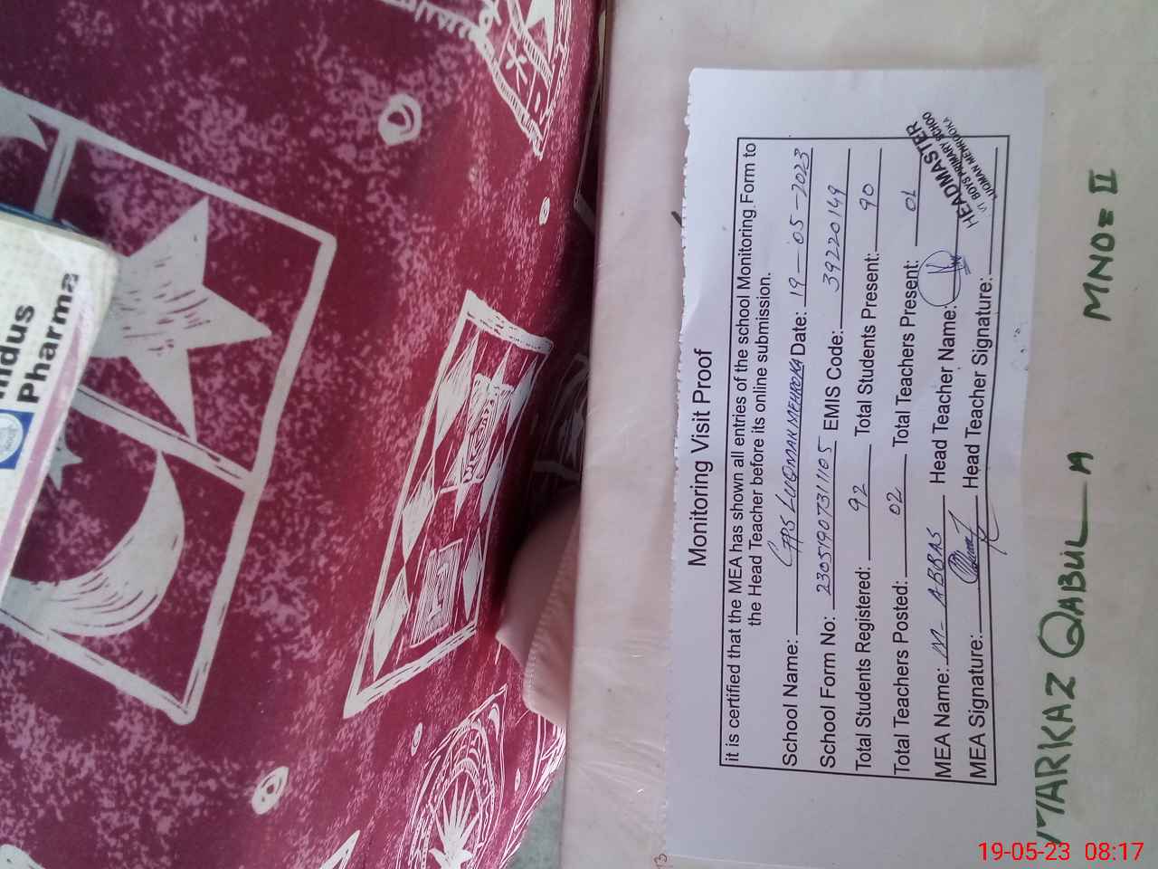 | Attendance Register | Head Teacher | MEA with School | Visit Proof |