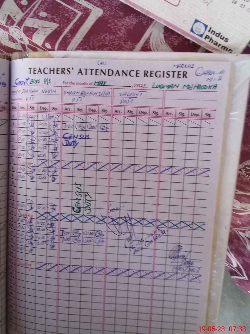 | CNIC | Full Name | Designation | R/C | Absence during last cal. month |