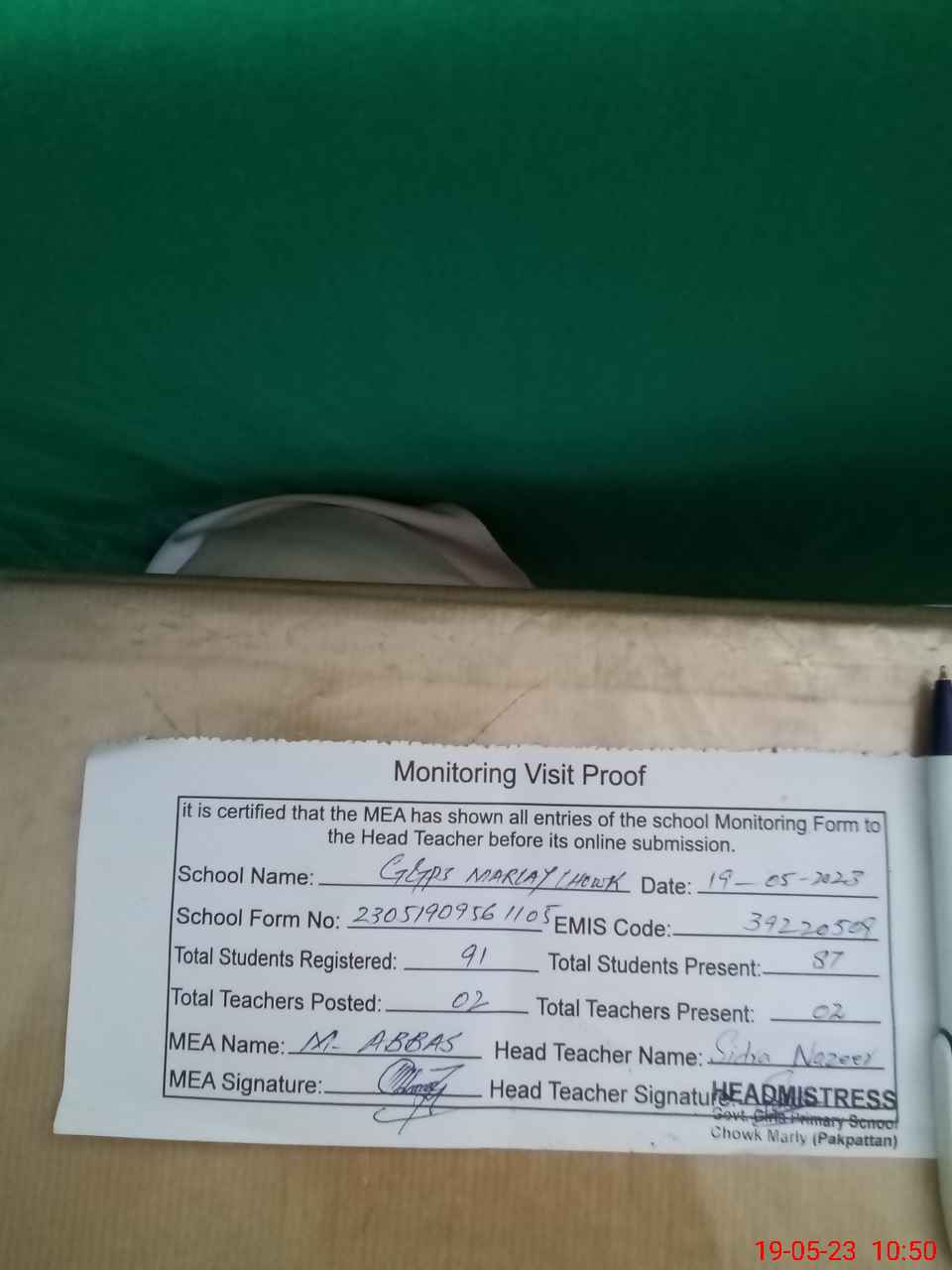 | EMIS Code: 39220509 | Name of School: GGPS CHOWK MARLAY | |||