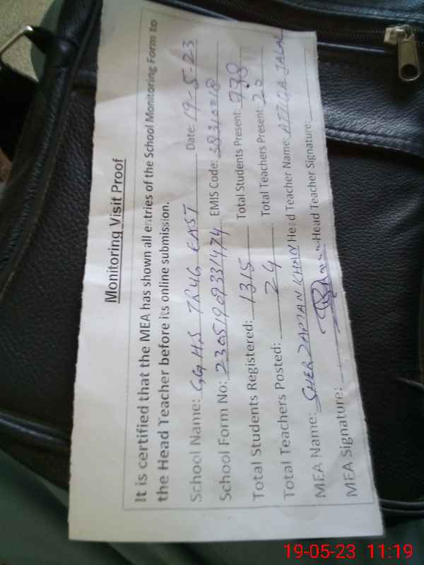 | Attendance Register | Head Teacher | MEA with School | Visit Proof |