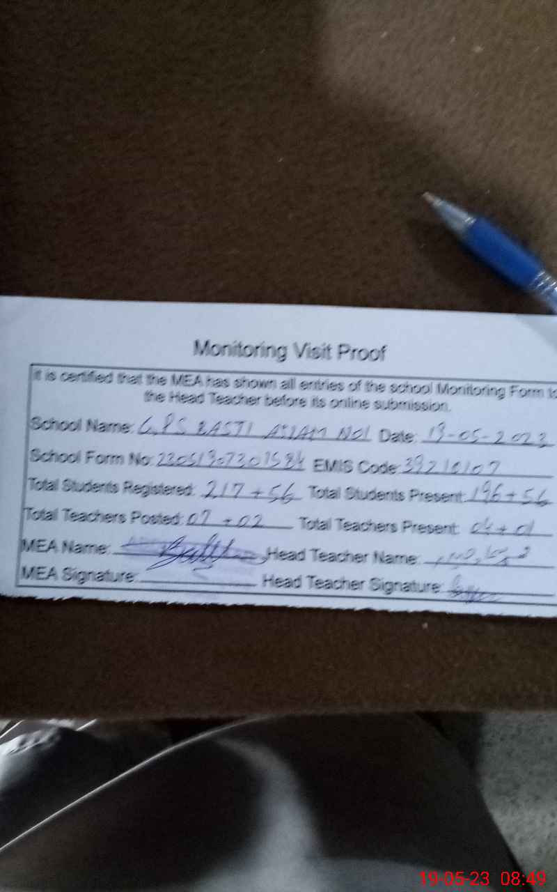 | Certified that this School was Inspected by the Undersigned MEA/DMO Today and the Information Stated Above is as Per Record. | |||||