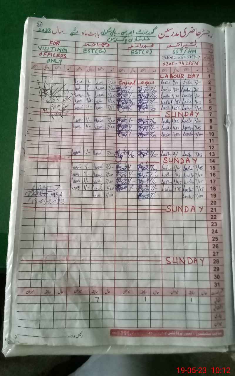 | Name: Mu**** Ar**** Designation: (School Headmaster's/Headmistress's) Head Master Phone/Cell Number: 03**** |