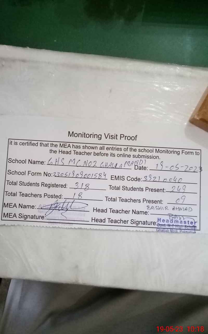 | EMIS Code: 39210040 | Name of School: GHS MC NO. 2 GHALLA MANDI | |||