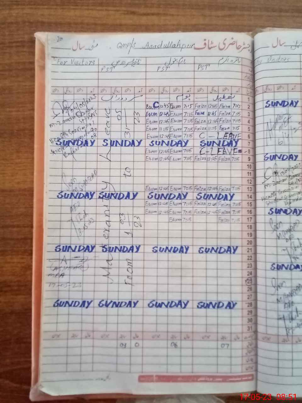 | Leave | Duty | Absent | Maternity | Medical | Ex- Pak |