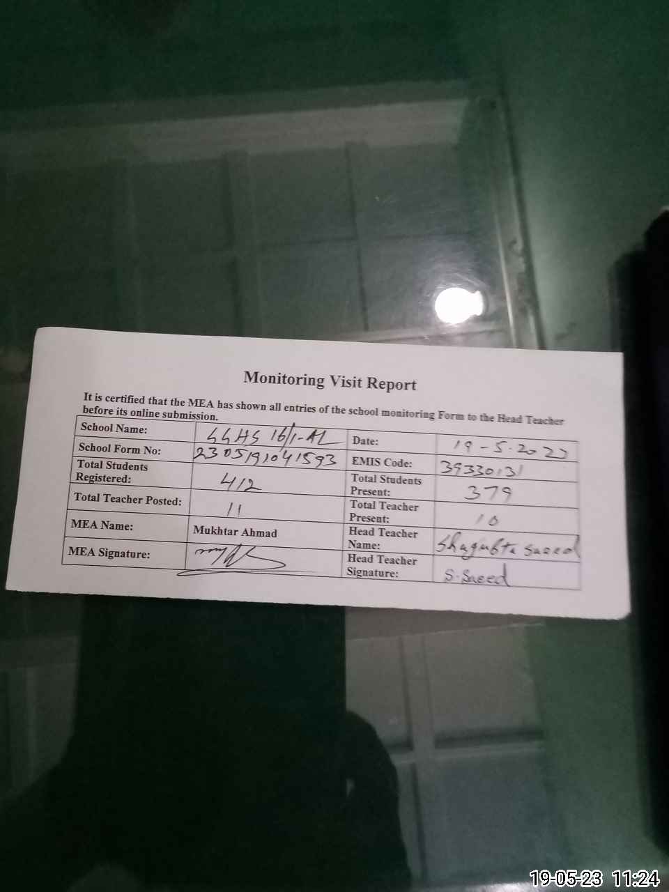 | Attendance Register | Head Teacher | MEA with School | Visit Proof |