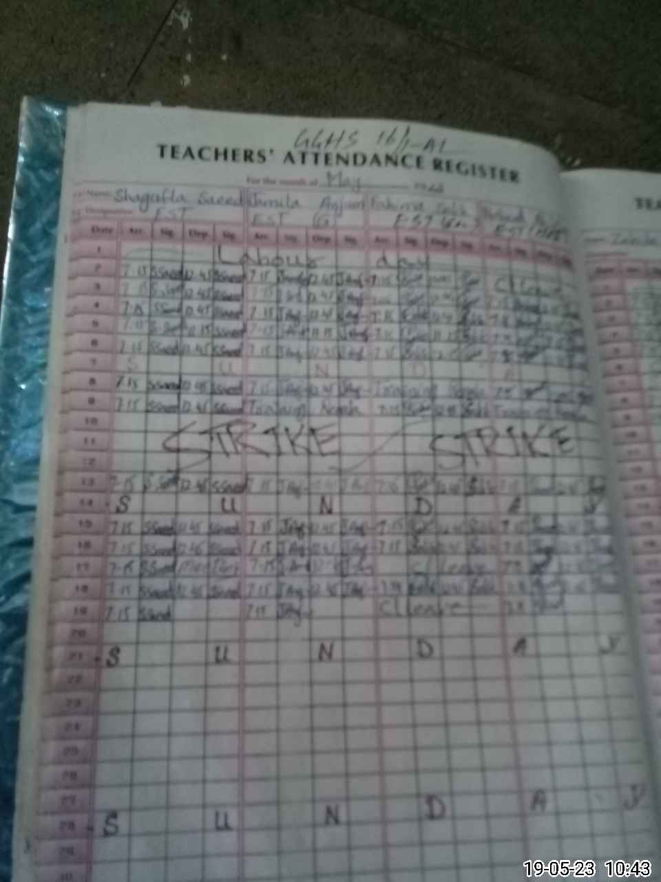 | CNIC | Full Name | Designation | R/C | Absence During Last Calender Month |