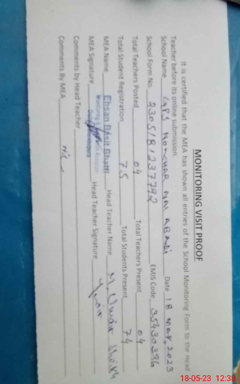 | Attendance Register | Head Teacher | MEA with School | Visit Proof |
