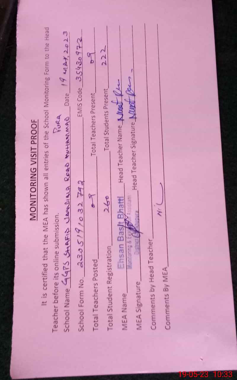 | EMIS Code: 35430972 | Name of School: GGPS SHAFIQ JANDIALA ROAD MUHAMMAD PURA | |||