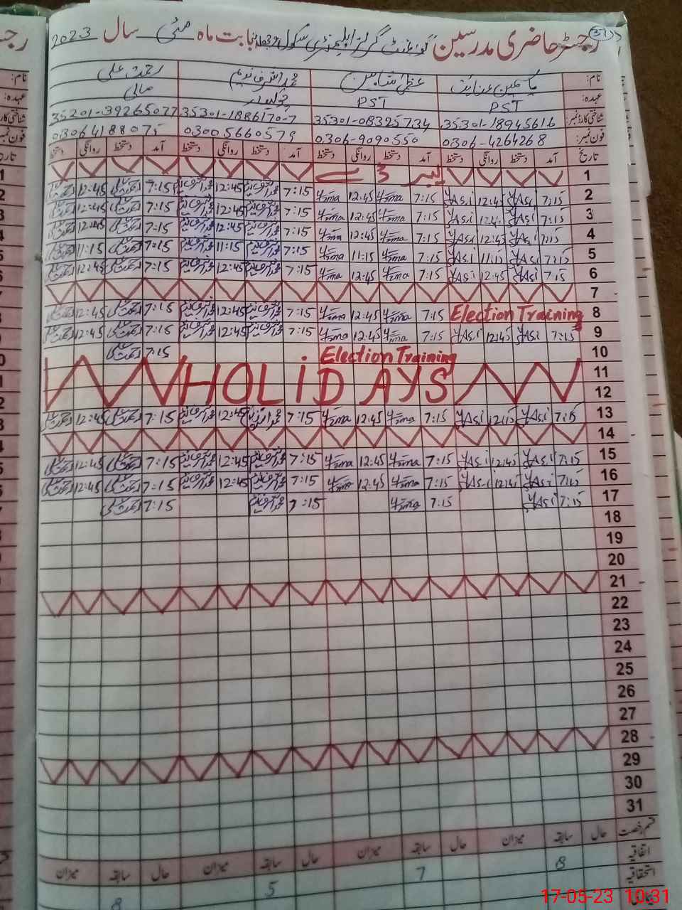 | CNIC | Full Name | Designation | R/C | Absence During Last Calender Month |