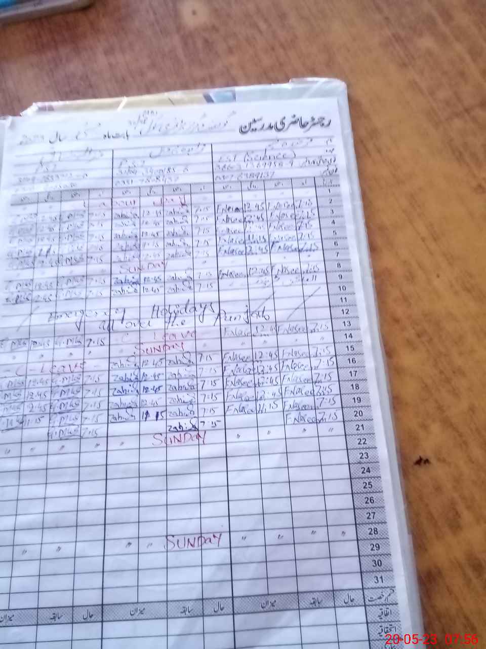 | CNIC | Full Name | Designation | R/C | Absence During Last Calender Month |