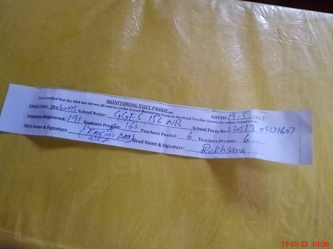 | EMIS Code: 38440075 | Name of School: GGES CHAK NO 156 NB | |||